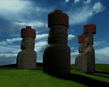 遺留在伊斯忒島上的600多座石像。外型都相同,最大的高20多公尺。這些石像被認為是為了崇拜祖先,並且炫耀氏族的力量和財富而建造的。