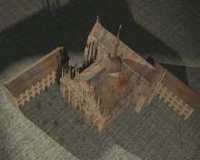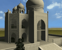 註:「所建造的」原文為「イスラムの巡礼先となっていた巨岩の上をおおって建てられた」,意為:建在一塊巨大的岩石上,是伊斯蘭教徒朝聖之地。