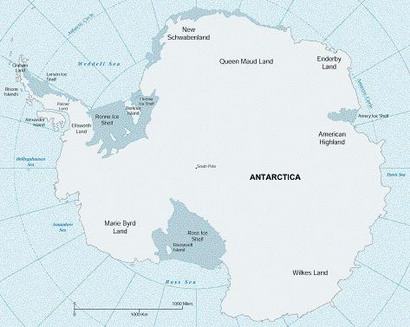 以南極點為中心,冰雪覆蓋的大陸。因為極其寒冷人類不能居住,只有地衣類植物,和企鵝等極少數種類的動物在此生息繁衍。