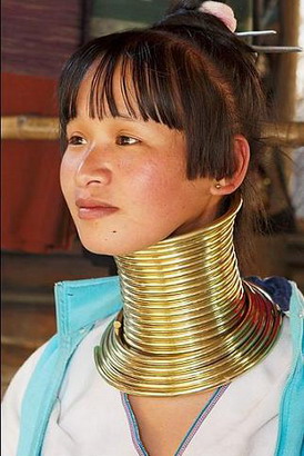 居住在泰國的長脖族。他們相信在特定的日期出生的女性身上有精靈附身,為了守護精靈,成人後每年在脖子上加套一個金環。