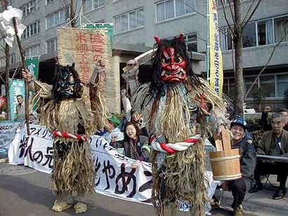 日本的活動,以及其裝扮。由幾個青年扮成鬼,挨家挨戶造訪並接受招待,然後致上祝福之詞。
