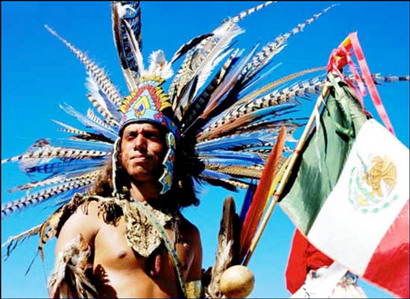 生活在美洲的民族。頭上戴著用鳥羽製成的頭飾。